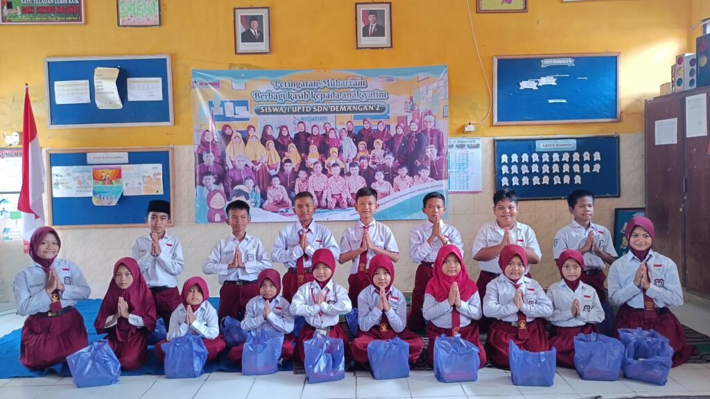 Dalam rangka peringatan Muharram 1447 Hijriah, UPTD SDN Demangan 2 Bangkalan kembali menyelenggarakan kegiatan santunan anak yatim yang dilaksanakan pada hari ini, Selasa, 15 Juli 2025. Bertempat di dalam salah satu ruang kelas, acara berlangsung dengan suasana khidmat, hangat, dan penuh makna kebersamaan.